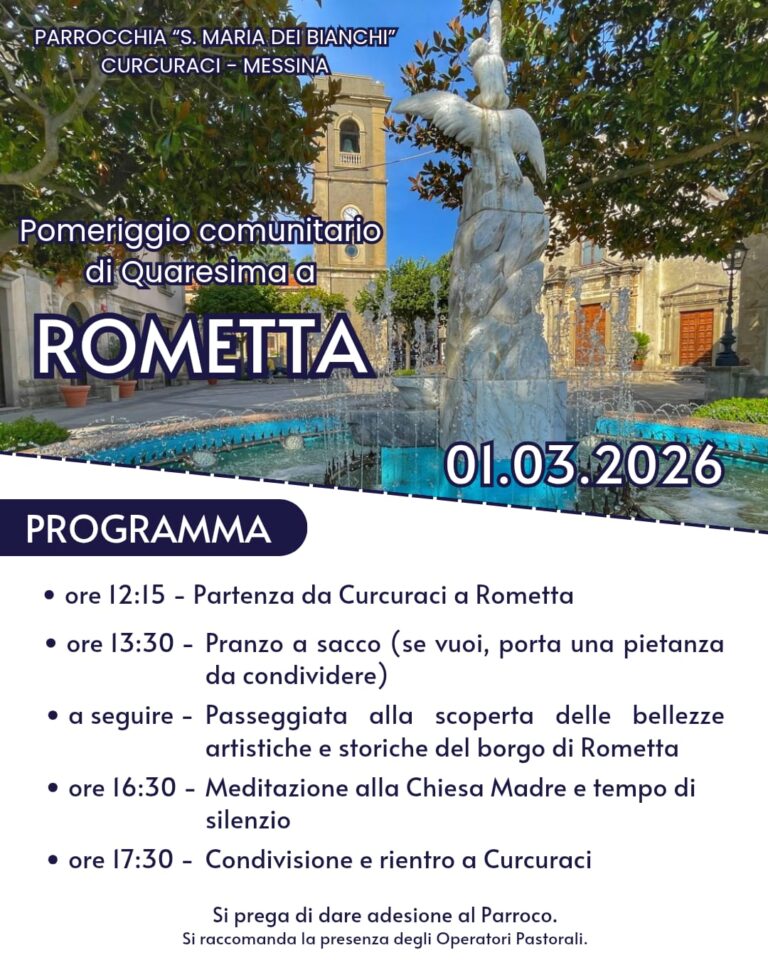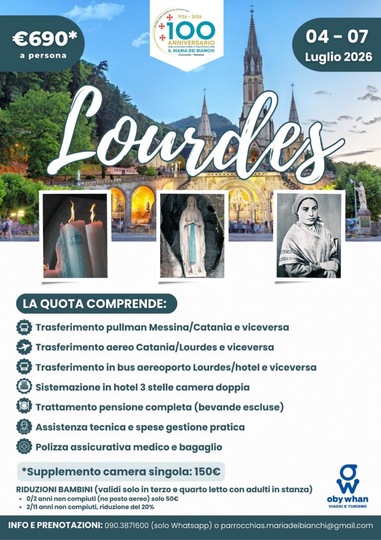 Nell’ambito del Centenario della Chiesa Parrocchiale di Santa Maria dei Bianchi (1926–2026), mercoledì 11 febbraio 2026, alle ore 17:30, si terrà la Celebrazione giubilare per…