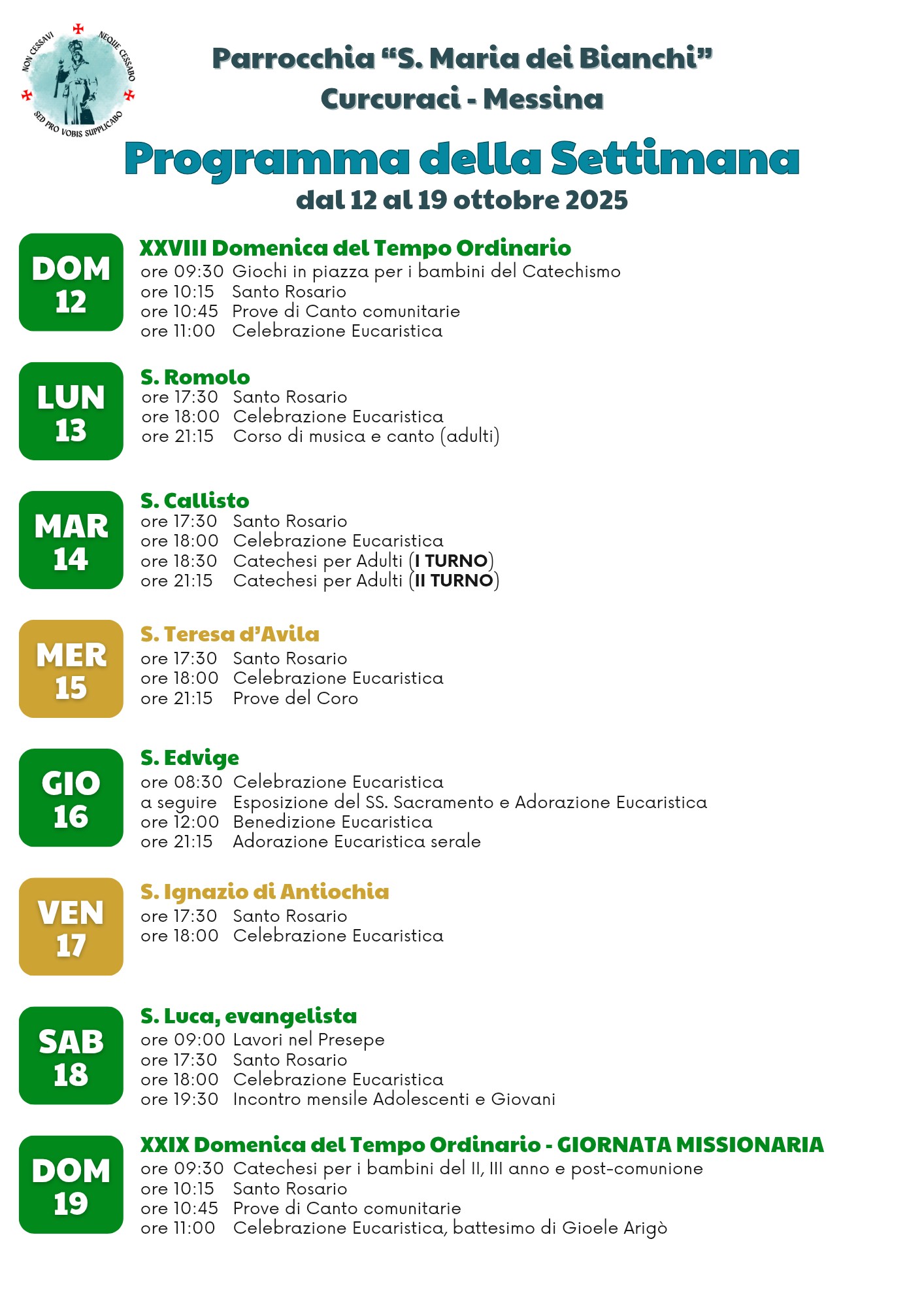 dal 12 al 19 ottobre