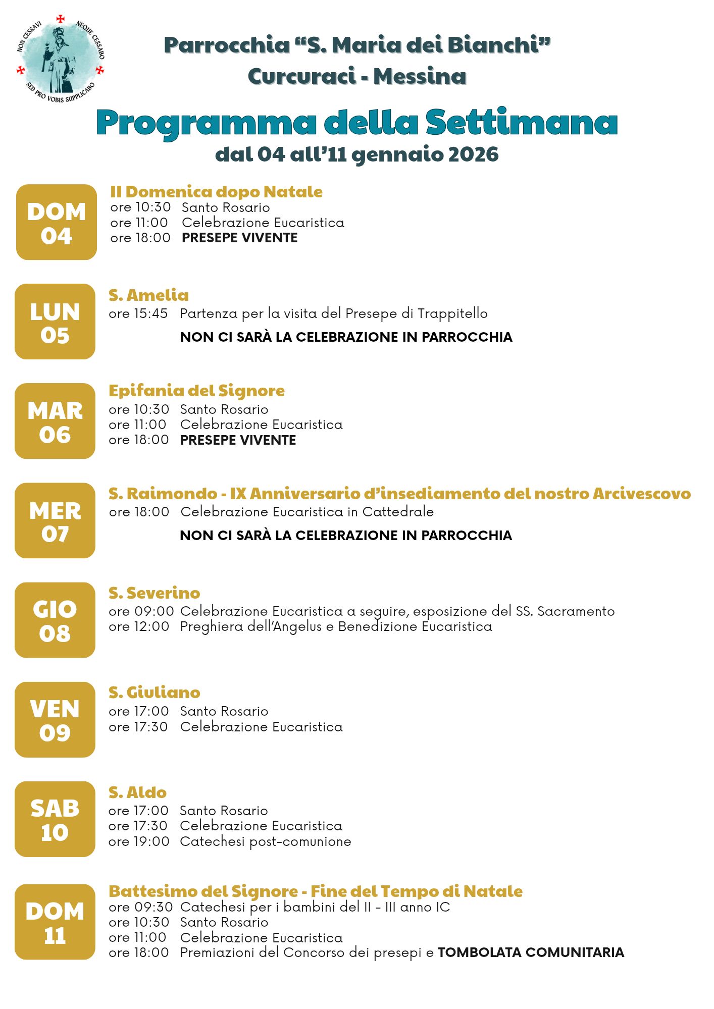 dal 4 all’11 gennaio 2026