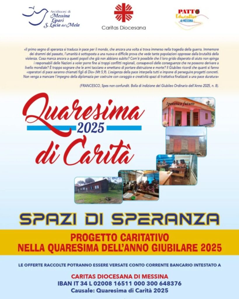 Domenica 23 marzo sarà possibile donare la propria offerta in Parrocchia che sarà interamente destinata all’iniziativa promossa dalla Caritas Diocesana: “Quaresima di Speranza”, un progetto caritativo che intende contribuire nella ristrutturazione di aule scolastiche presso il Centro di Specializzazione per le Professioni Femminili a Butembu (Repubblica democratica del Congo).Il nostro aiuto potrà garantire un futuro migliore a chi è meno fortunato di noi