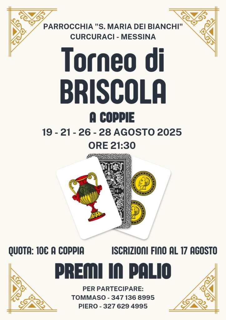 La prima che vogliamo condividere con voi è il Torneo di Briscola a coppie che avrà inizio martedì 19 agosto ore 21:30